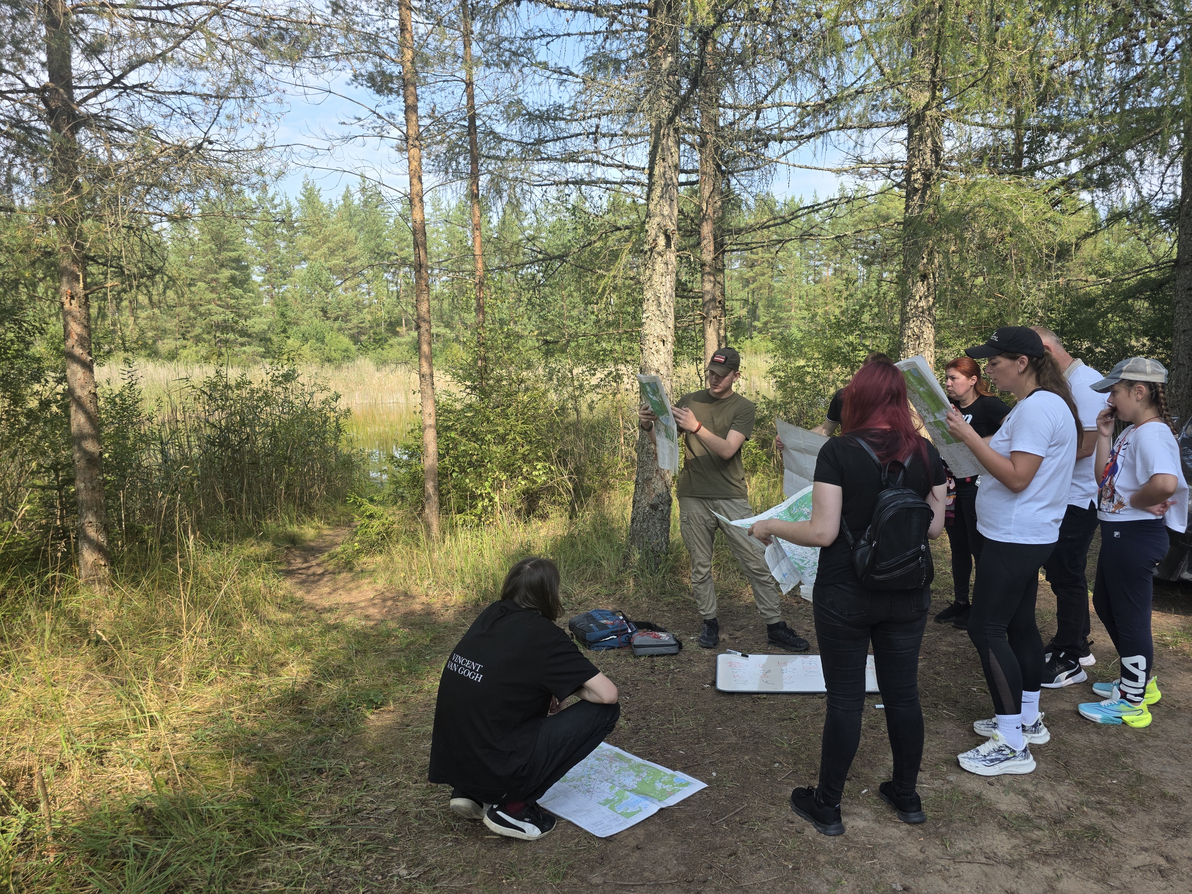 Dalībnieki praktiski apguva orientēšanās prasmes ar kompasu un karti,